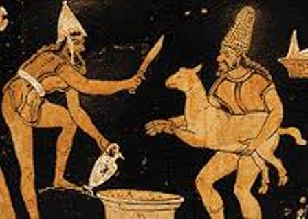Nella Grecia antica , i capri espiatori, Οι φαρμακοι (pronuncia oi farmacoi) individui in carne ed ossa, prendevano su di sé le colpe della comunità e quando erano uccisi od allontanati si riteneva che la comunità venisse liberata e purificata. Noi non uccidiamo vittime sacrificali ma utilizziamo come, capri espiatori, oi farmacoi, vittime già precostituite e per rendere più accettabile la trasposizione le trasformiamo in eroi.